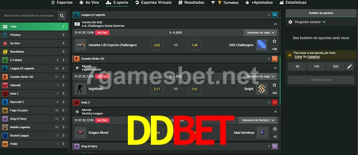 O DDbet oferece uma grande seleção de opções de apostas em e-sports com probabilidades competitivas